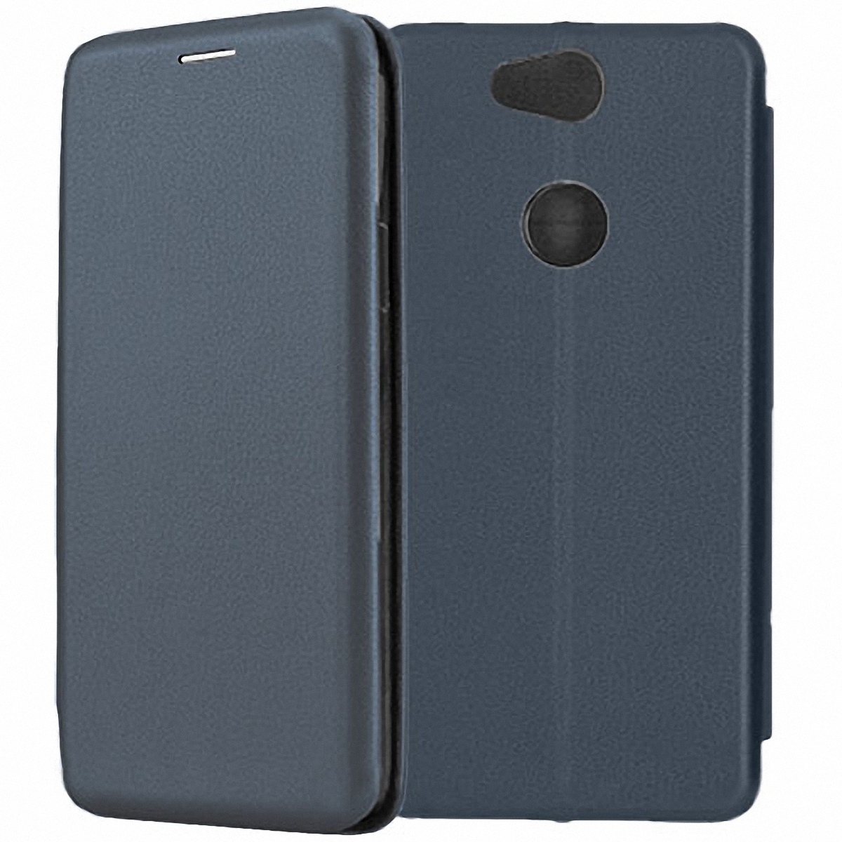 Чехол-книжка Fashion Case темно-синего цвета для смартфона Sony Xperia XA2 Plus с твердой магнитной 3D обложкой и силиконовой прозрачной вставкой внутри легко трансформируется в удобную подставку, имеет отделение для карт.