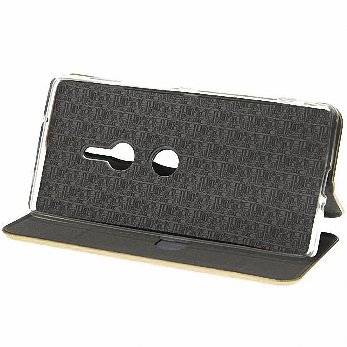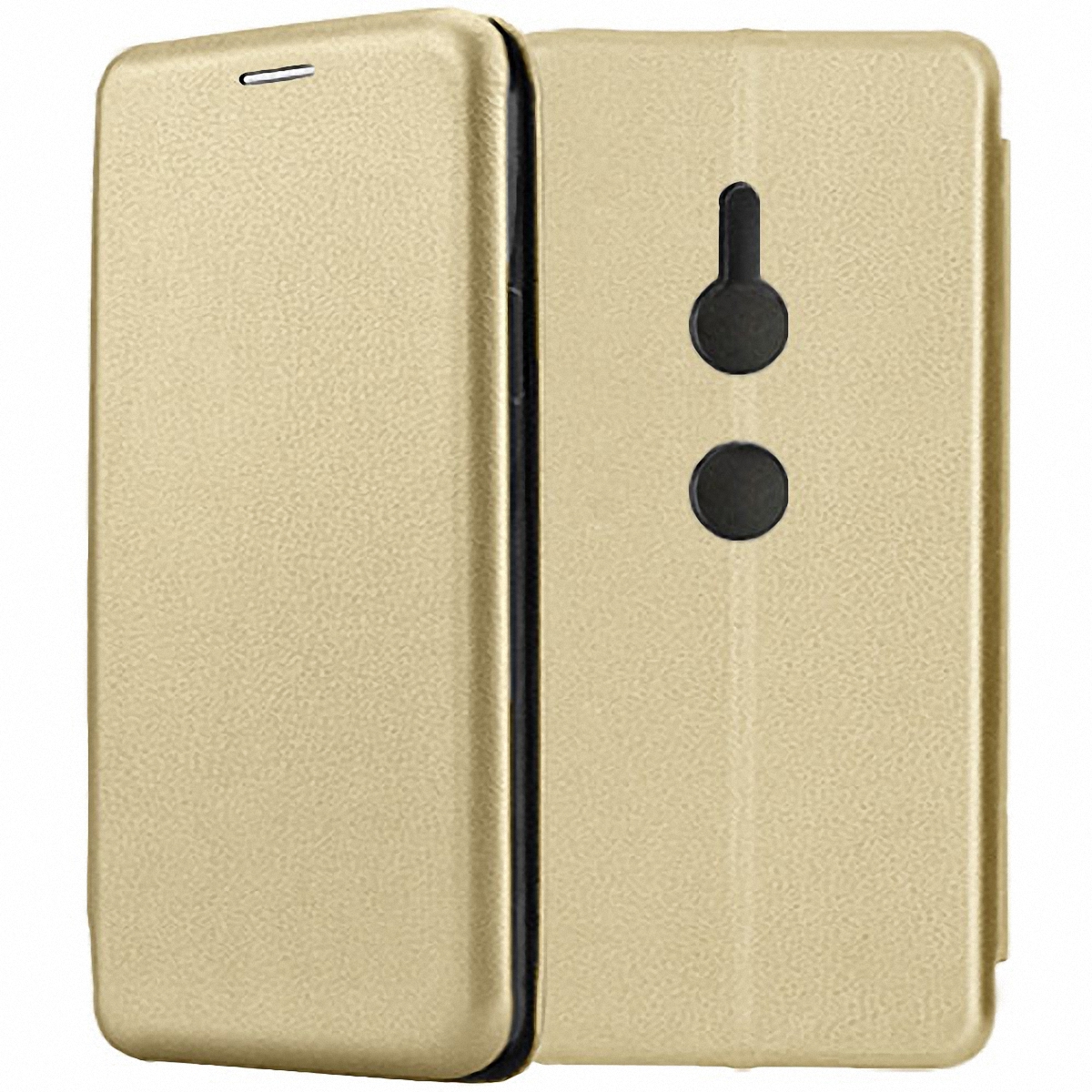 Чехол-книжка Fashion Case золотистого цвета для смартфона Sony Xperia XZ2/XZ2 Dual с твердой магнитной 3D обложкой и силиконовой прозрачной вставкой внутри легко трансформируется в удобную подставку, имеет отделение для карт.