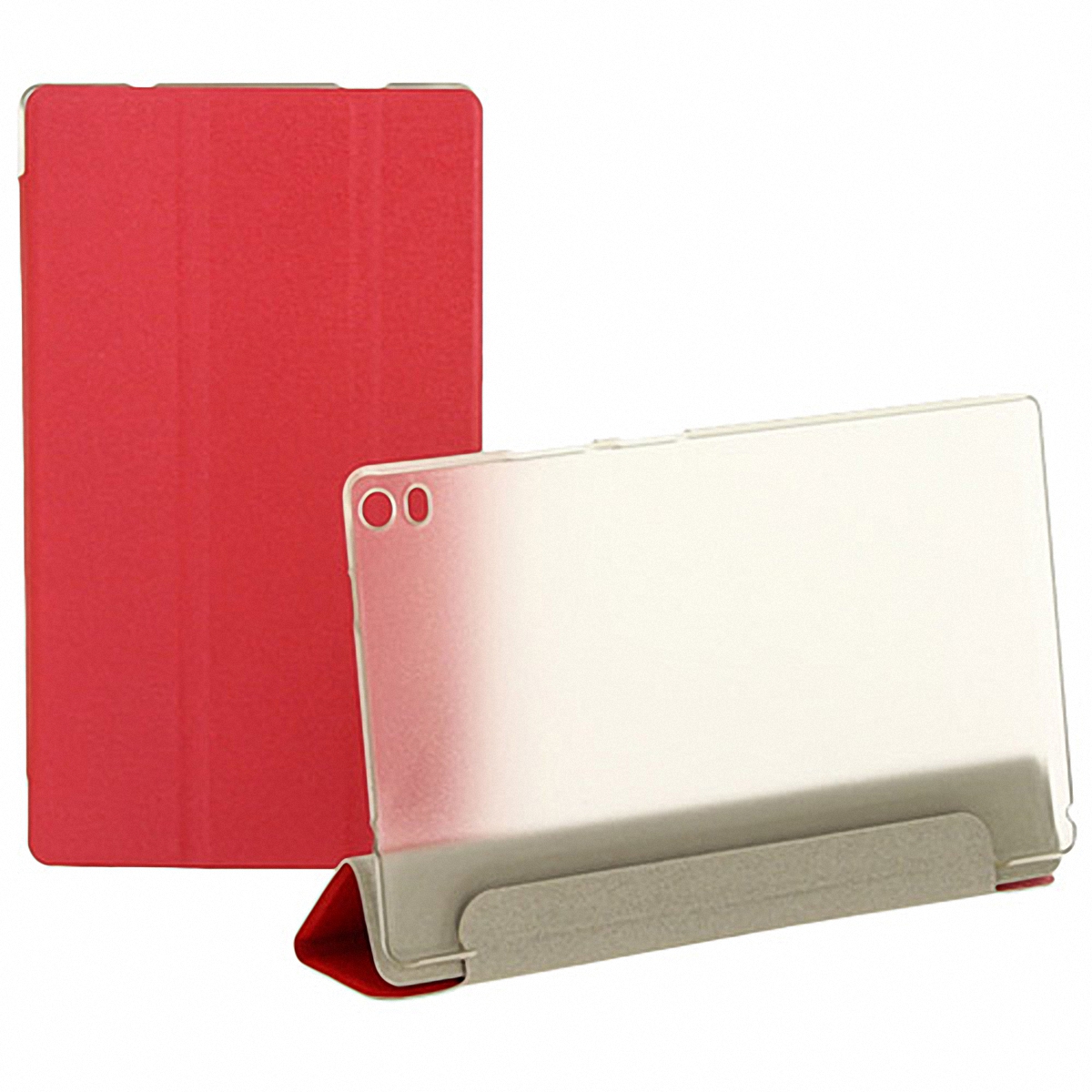 Стильный чехол Trans Cover для планшета Lenovo Tab 4 8 Plus TB-8704 с матовой полупрозрачной пластиковой задней накладкой и PU обложкой красного цвета. Чехол-книжка трансформируется в удобную подставку для просмотра видео и набора текста.