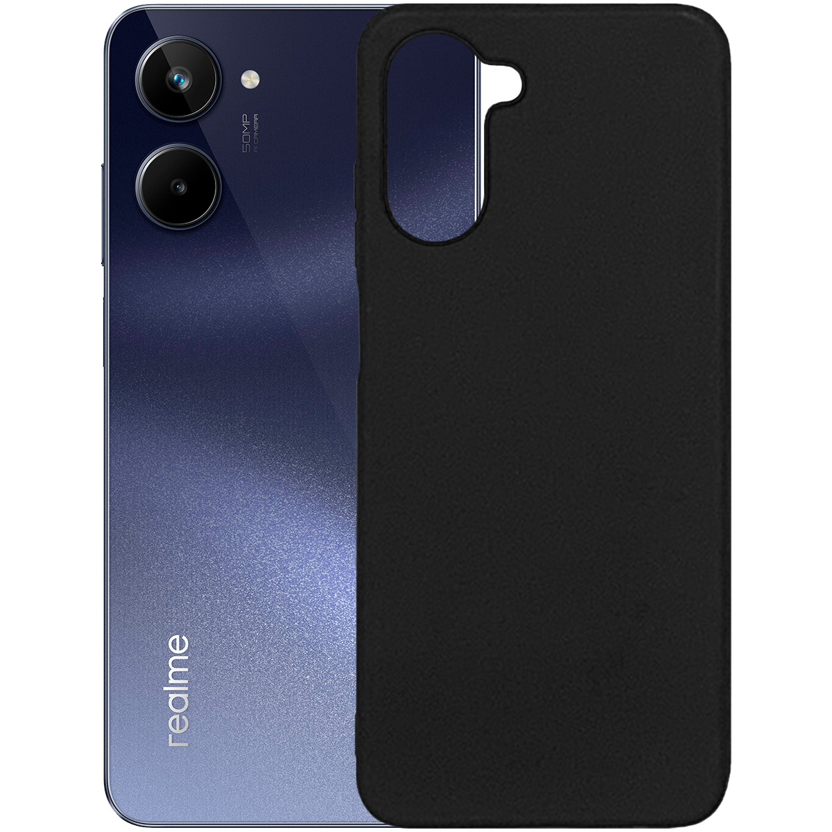 Черный силиконовый чехол MatteCover с матовым покрытием для надежной защиты задней и боковых панелей телефона Realme 10 от потертостей.