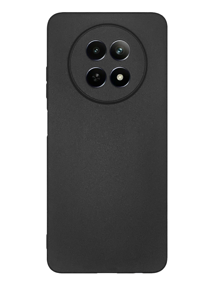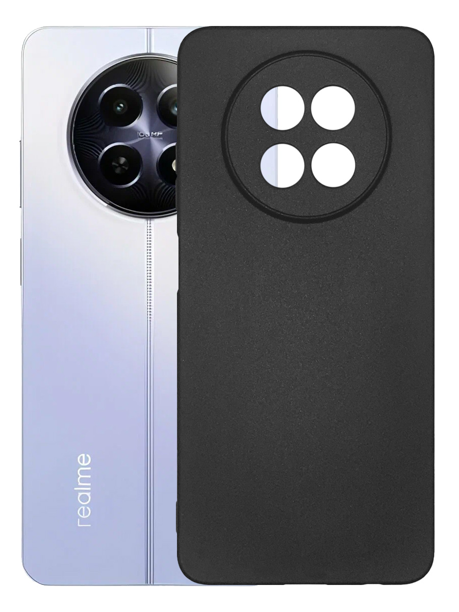 Черный силиконовый чехол MatteCover с матовым покрытием для надежной защиты задней и боковых панелей телефона Realme 12 5G от потертостей.