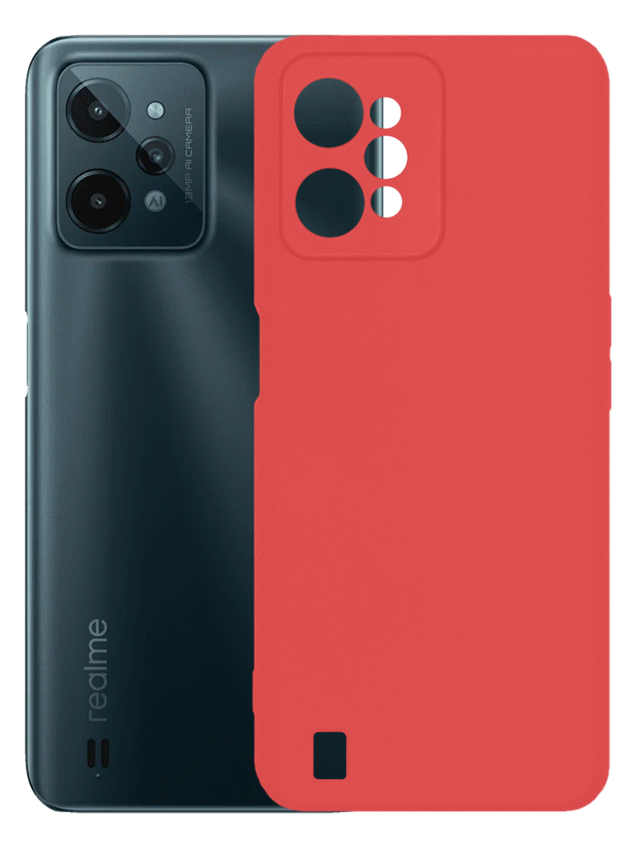 Красный силиконовый чехол MatteCover с матовым покрытием для надежной защиты задней и боковых панелей телефона Realme C31 от потертостей.