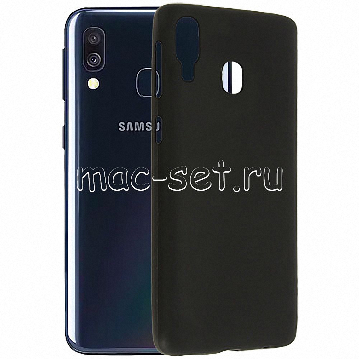 Черный матовый чехол-накладка для Samsung Galaxy A40 A405 из плотного TPU силикона надежно защитит корпус смартфон при падении.