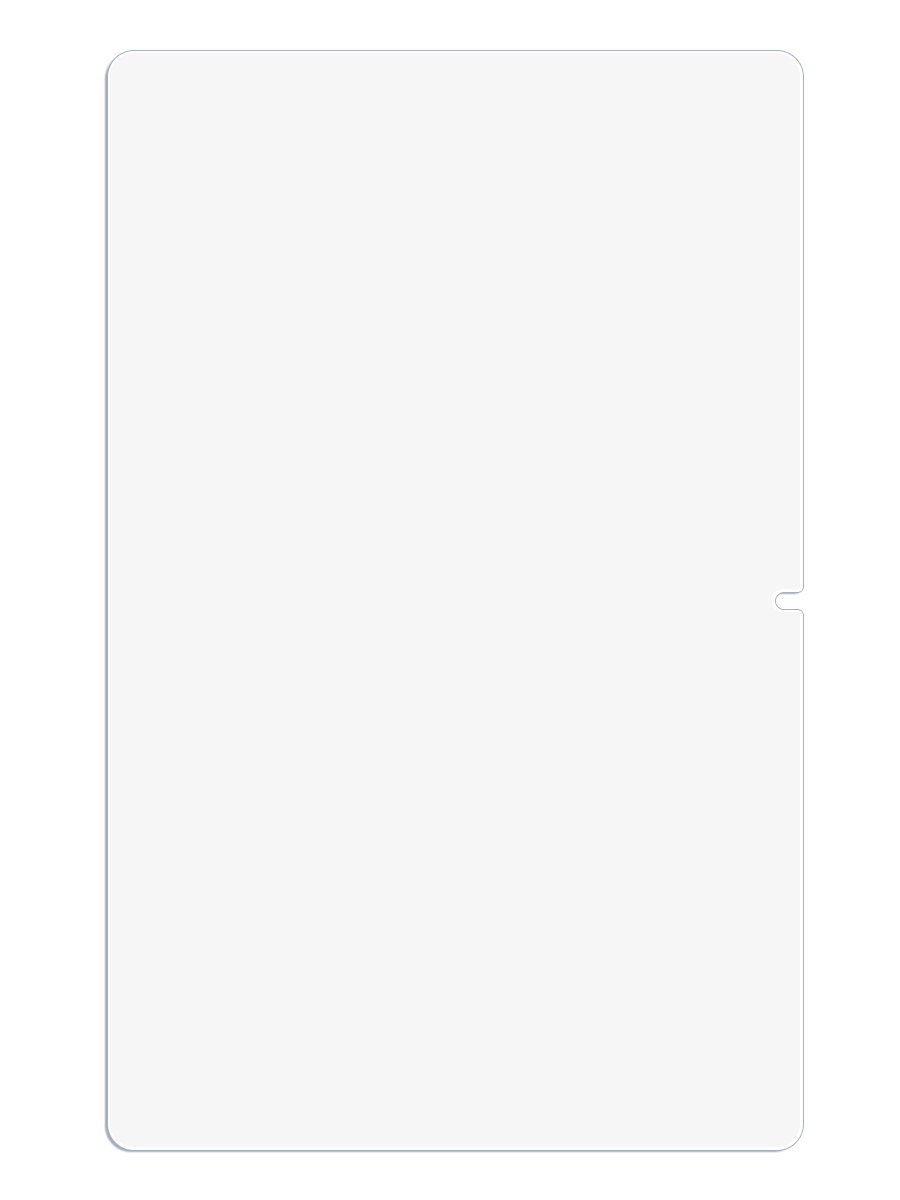 Из-за особенностей формы дисплея планшета защитное стекло закрывает только плоскую часть экрана и не достает до краев передней панели.
